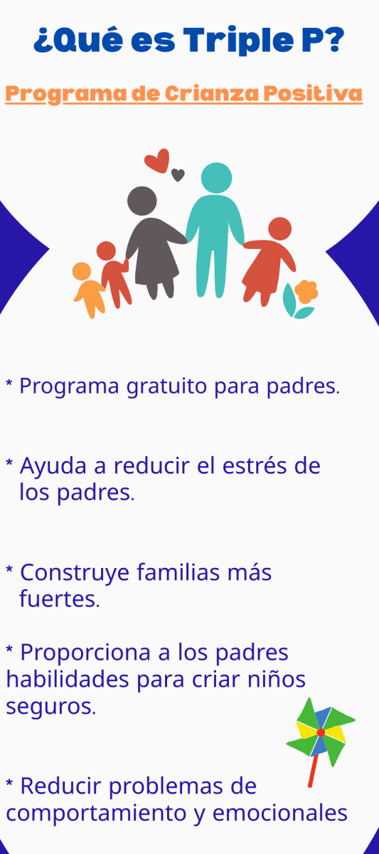 Triple P is a Positive Parenting Program that is evidence-based, multi-level parenting and family support system geared towards improving parent–child relationships, promoting children’s social, emotional, and behavioral development, and preventing and reducing behavioral and emotional problems in children. To begin the referral process, please reach out to our Community Support Center or head to www.triplep-parenting.com for more information.
